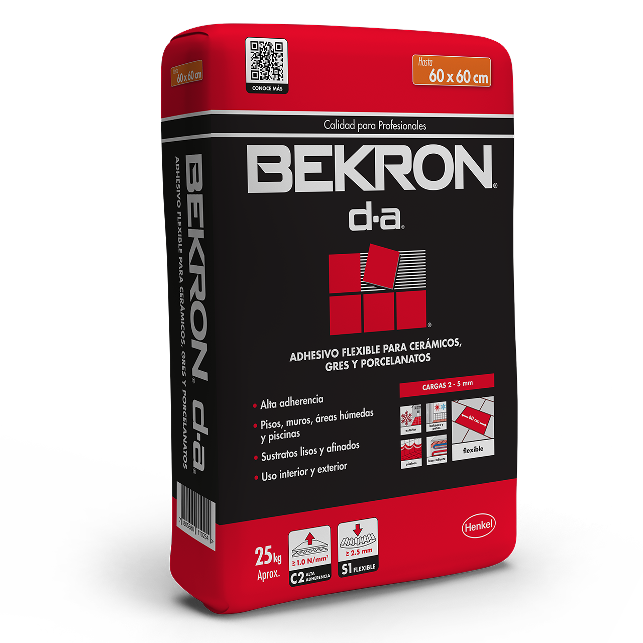 Bekron DA adhesivo cerámico porcelanato de doble matriz con un coeficiente de flexibilidad, cohesión y adherencia de contacto muy superior al de los adhesivos corrientes.