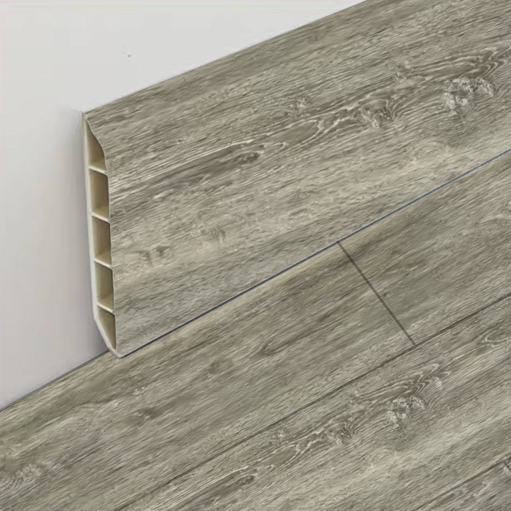 Fabricado en Stone Plastic Composite (SPC), este perfil combina rigidez, estabilidad y resistencia a la humedad, lo que lo convierte en una alternativa práctica para ambientes exigentes del hogar o del área comercial. Su formato de 240 cm de largo permite cubrir tramos amplios con menos uniones, mientras que su altura de 80 mm ofrece una presencia decorativa equilibrada y funcional.