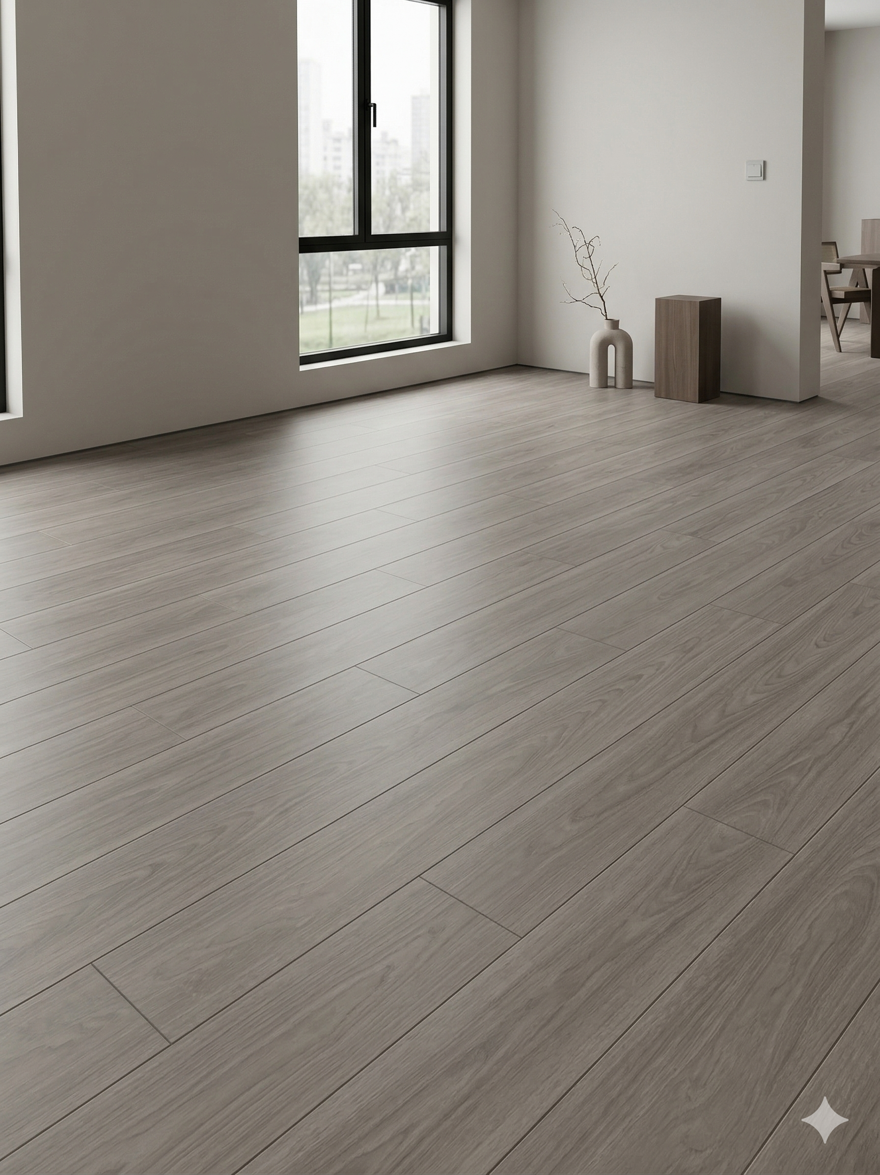 Elige este piso SPC gris cuando busques un revestimiento con look madera, buena estabilidad, resistencia al agua y bajo mantenimiento. Frente al piso laminado, el SPC resiste mucho mejor la humedad, por lo que es más adecuado para baños y cocinas. En comparación con la cerámica, ofrece una sensación más cálida al tacto, menor ruido al caminar y una instalación más rápida, sin obra húmeda. Es una opción especialmente práctica para hogares con niños, mascotas o tránsito frecuente.