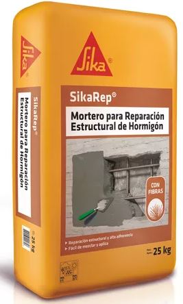 Sika Rep en saco de 25 kg, mortero monocomponente de reparación estructural formulado con cemento modificado con polímeros. Diseñado para restaurar muros, pilares, vigas, losas y elementos de concreto dañados. Solo agregar agua.